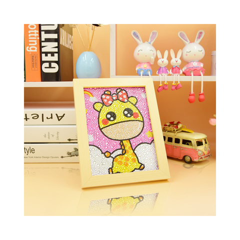 5D ילדים עגולים יהלומי ציור עם מסגרת ערכת קריקטורה בעלי החיים ג 'ירפה ילדה צלב סטיץ ילדים מתנות בית דקור