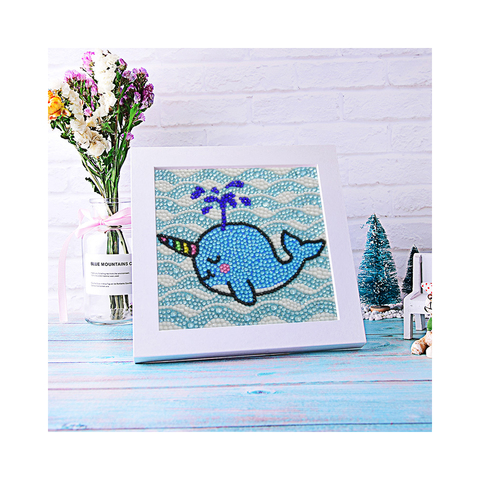 5D DIY ילדים עגולים יהלומי ציור עם מסגרת חיות מצוירות לווייתן ילדי של מתנת בד יהלומי ציור ערכת בית דקור